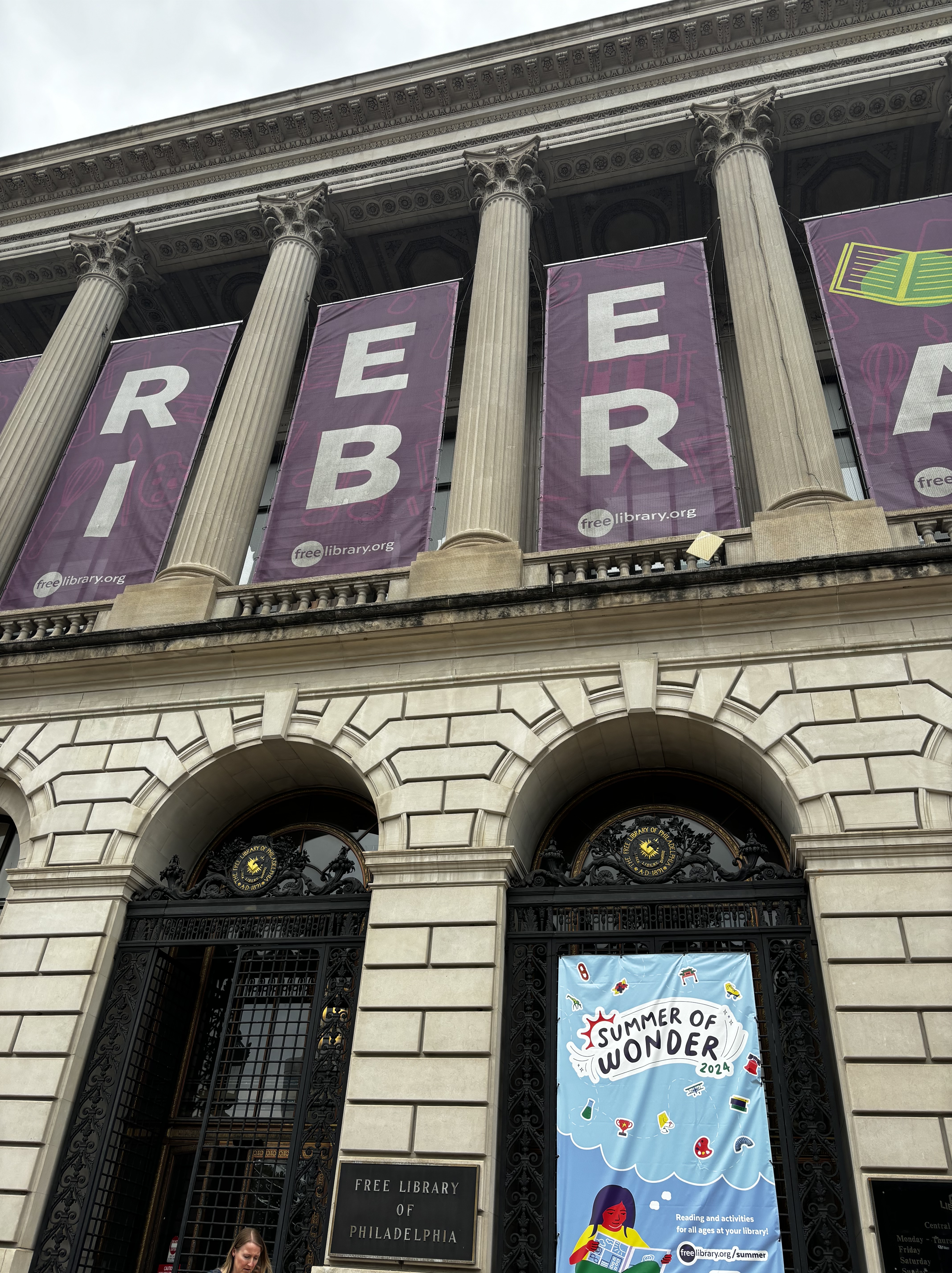 One narrative we have heard over and over about the lease is how innovative it is. This is the type of thing that big cities would do. If Erie wants to aspire to be like bigger cities, then a lab in the library is a great thing for tourism. Last week I went on vacation to Philadelphia. There, I sought out the main branch of the Free Library of Philadelphia. I have a library card in the Philly system–details here: https://keepourlibrarypublic.com/2024/06/17/94/. The main library is located a short walk from Benjamin Franklin Parkway. It’s in a district that includes the Museum of Modern Art (yes, where Rocky ran up the steps), the Rodin Museum, the Franklin Institute, the Barnes Foundation, and Logan Square. I saw a beautiful building, books, people, sheet music, a summer reading program, and a security guard playing actual chimes to signal the quarter hour. I also saw a computer lab located accessibly on the first floor of the building. I saw an air-conditioned space on a 100 degree day. On the block behind the library was located Book Corner which is run by the Friends of the Free Library of Philadelphia. They operate this used book and media store year round to raise money for the library.