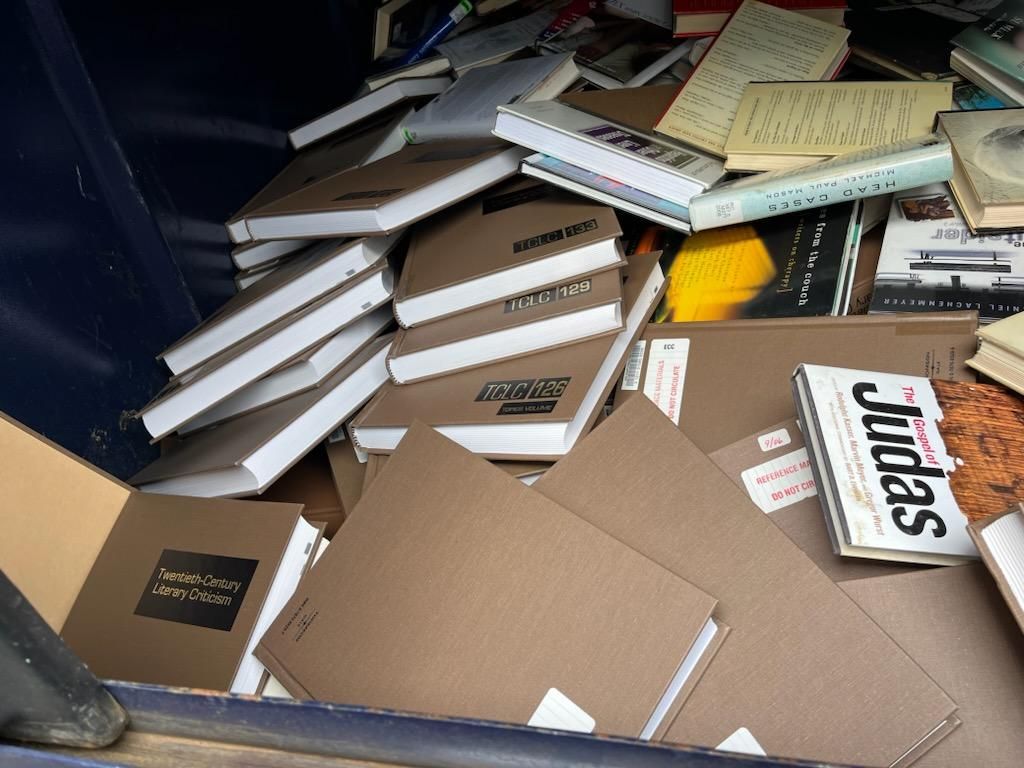 To the dumpster. The county executive seems to have a thing for dumpsters. Hopefully, a number of them made their way to the Friends of the Library for the Great American Book Sale.