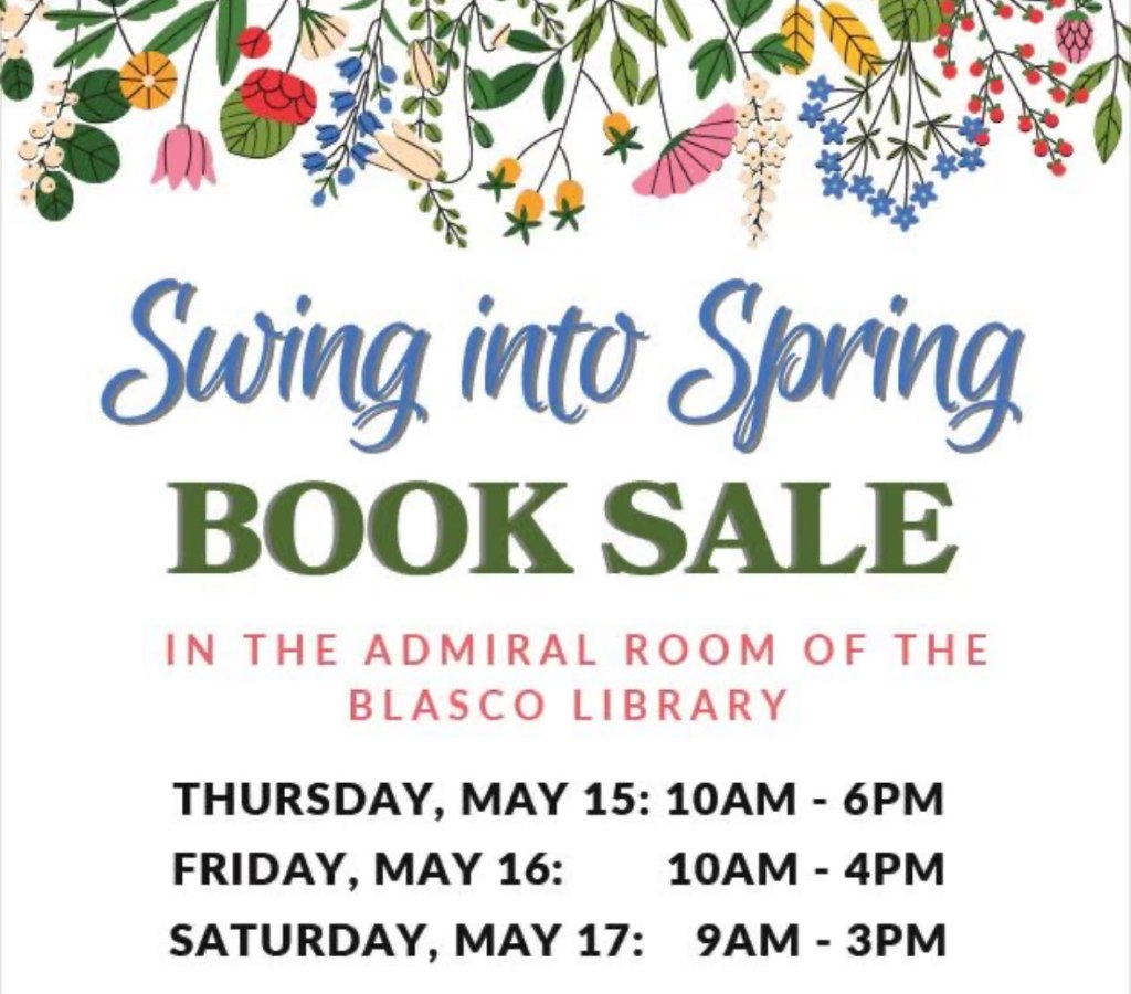 You have the opportunity this week to support the Friends of the Library and support the Blasco at the same time! The Spring into Spring Book Sale starts this Thursday. The Friends are also holding a book drive at the same time, so you can make room for all the books you’ll bring home from the sale.